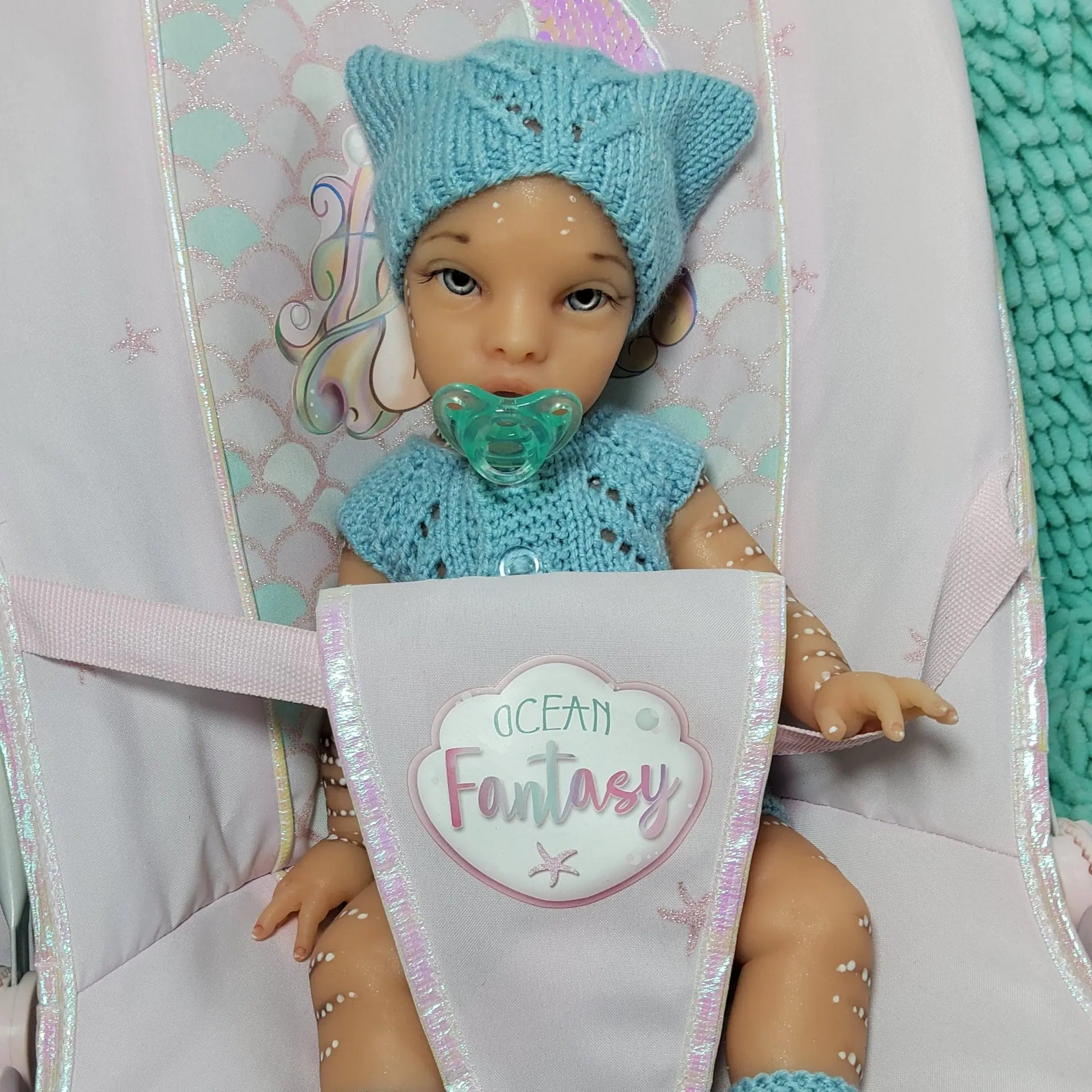 Nursery presents Sterling This vinyl reborn baby was hand-painted with several layers of acrylic paint, revealing veins, redness, and marbling for an ultra-realistic effect. Her curly black hair is individually hand-rooted for a natural and silky finish. A unique reborn doll, made with passion and meticulous care. Implanted curly black hair Mixed-race reborn baby Between 45 and 60 hours of work Hair implanted individually 49 cm Weight 2.500 kg Magnetic pacifier, outfits... Certificates of authenticity Artist's presentation booklet and interview Personalized birth certificate   Additional Information Weight: 3 kg Dimensions: 50 cm Mixed-race reborn Mixed-race-reborn-baby-realistic