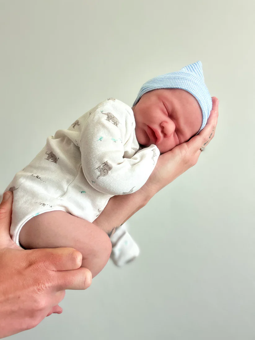 This is baby OLIVER! (CUSTOM ORDER) hand sculpted, poured and painted into pure cuddle perfection. He is the perfect newborn size measuring in at 19 inches with his leg scrunched and weighs in at 7lbs 5oz! Who wants a weighted blanket to calm them when a perfectly weighted baby is so much cuter!?